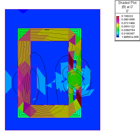 在罩極電機中,轉子被放置在一個簡單的c型芯中,每根磁極的一半被一個罩極線圈覆蓋,當交流電流通過供電線圈時,會產(chǎn)生脈動磁通。當通過遮光線圈的磁通量變化時,罩極線圈中會感應到電壓和電流,從而與來自電源線圈的磁通量變化相對應。因此,罩極線圈下的磁通量滯后于線圈其余部分的磁通量。通過轉子在磁通中產(chǎn)生一個小的旋轉,從而使轉子旋轉,下圖為在用有限元分析得到的磁通線。
